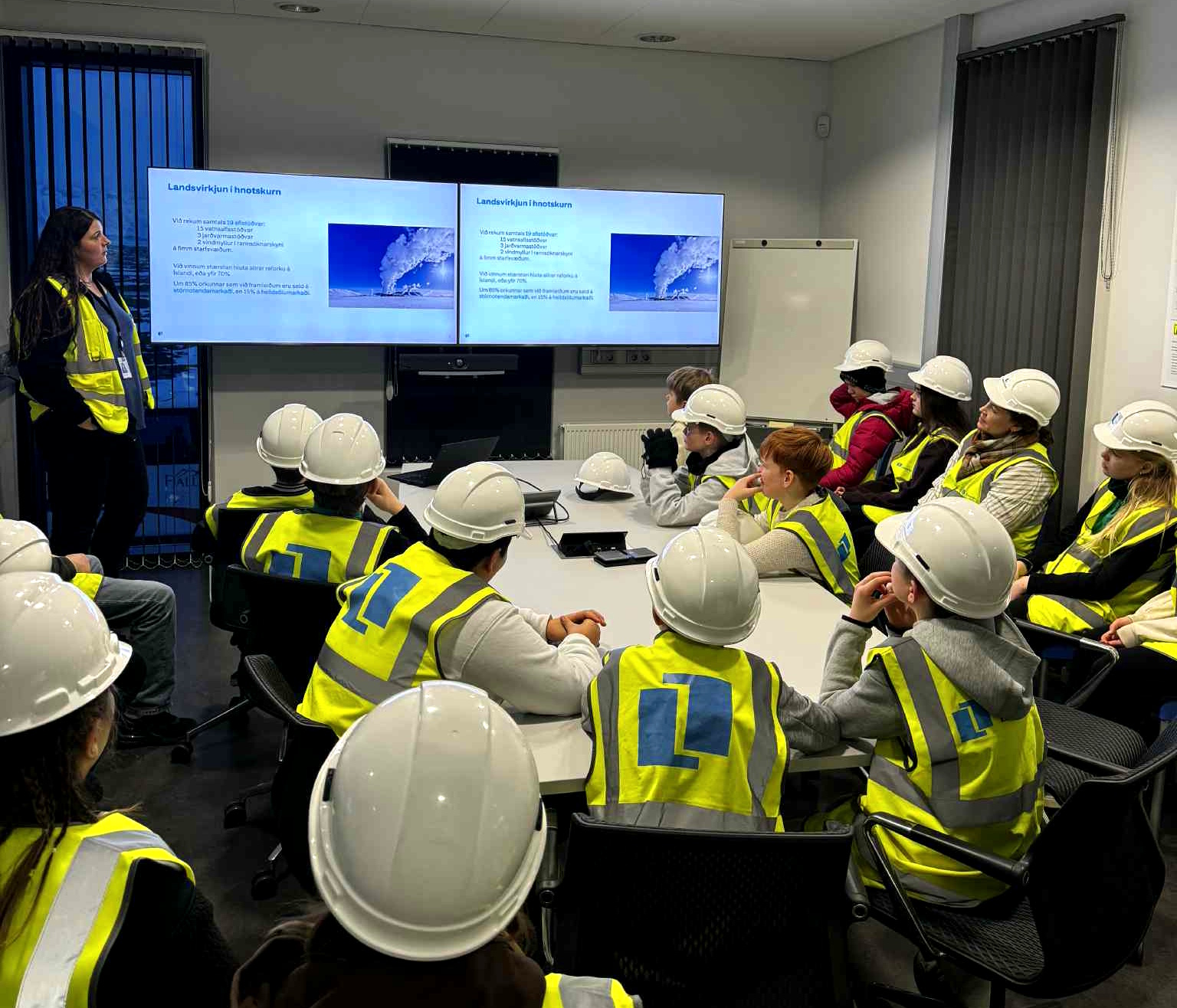 Hildur Vésteinsdóttir verkefnastjóri hjá Landsvirkjun tók á móti hópnum og fór yfir öryggisreglur og fræddi nemendur um virkjanir Landsvirkjunar. Nemendur fengu kynningu á gufuaflsvirkjun og fengu loks að skoða stöðina sjálfa og fylgjast með ferlum gufunnar í gegnum stöðina. Auk þess kíktu nemendur á borholur og fundu orkuna í holunum.
