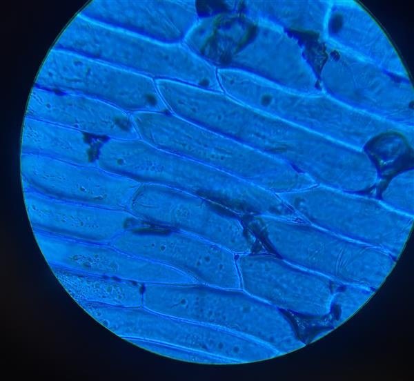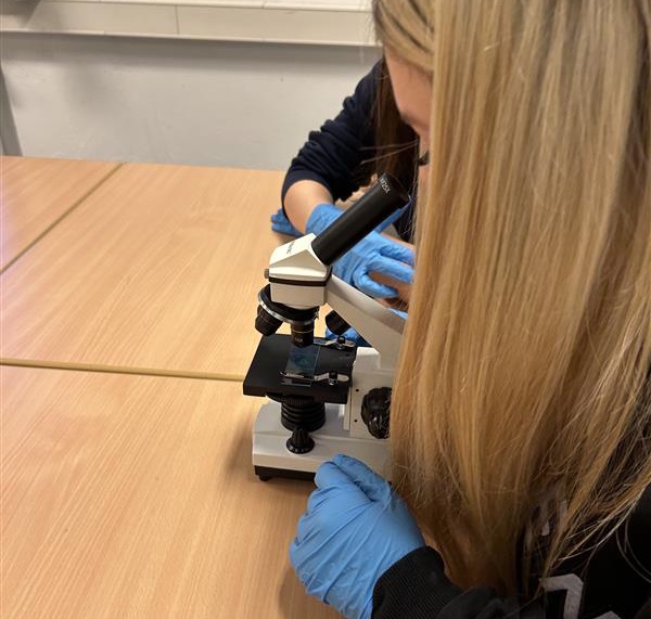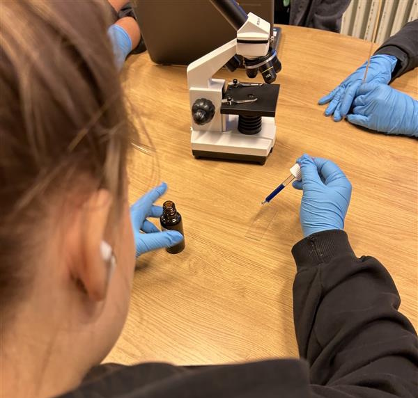 Nemendur tóku sýni úr munni og lauk til að skoða dýrafrumur annarsvegar og plöntufrumur hinsvegar. Nemendur níunda eru að stíga sín fyrstu skref í erfðafræði og notuðu tækifæri til að skoða frumurnar í nánari smáatriðum.