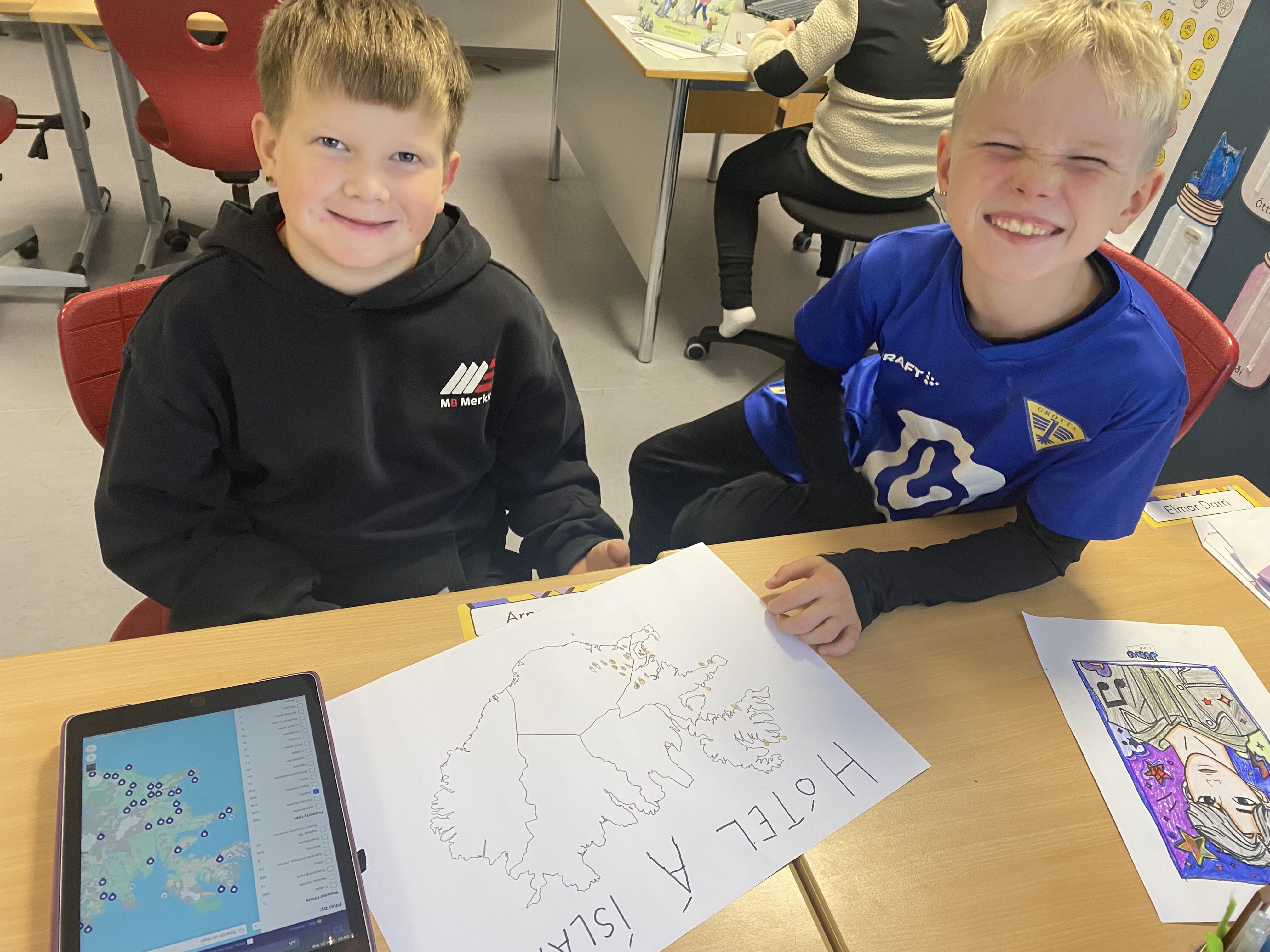 Nemendur fjórða bekkjar læra um eldfjallaeyjuna Ísland og nota kennslubókina Halló heimur. Þar er m.a. unnið með kort og áttir, landshluta, há- og láglendi, stærstu vötnin og hvar fólkið býr. Samhliða þessu er unnið með hnitakerfi og mælingar í stærðfræði. Þetta rímar við áherslur barnamenningarhátíðar sem fór fram á Húsavík fyrir skemmstu.